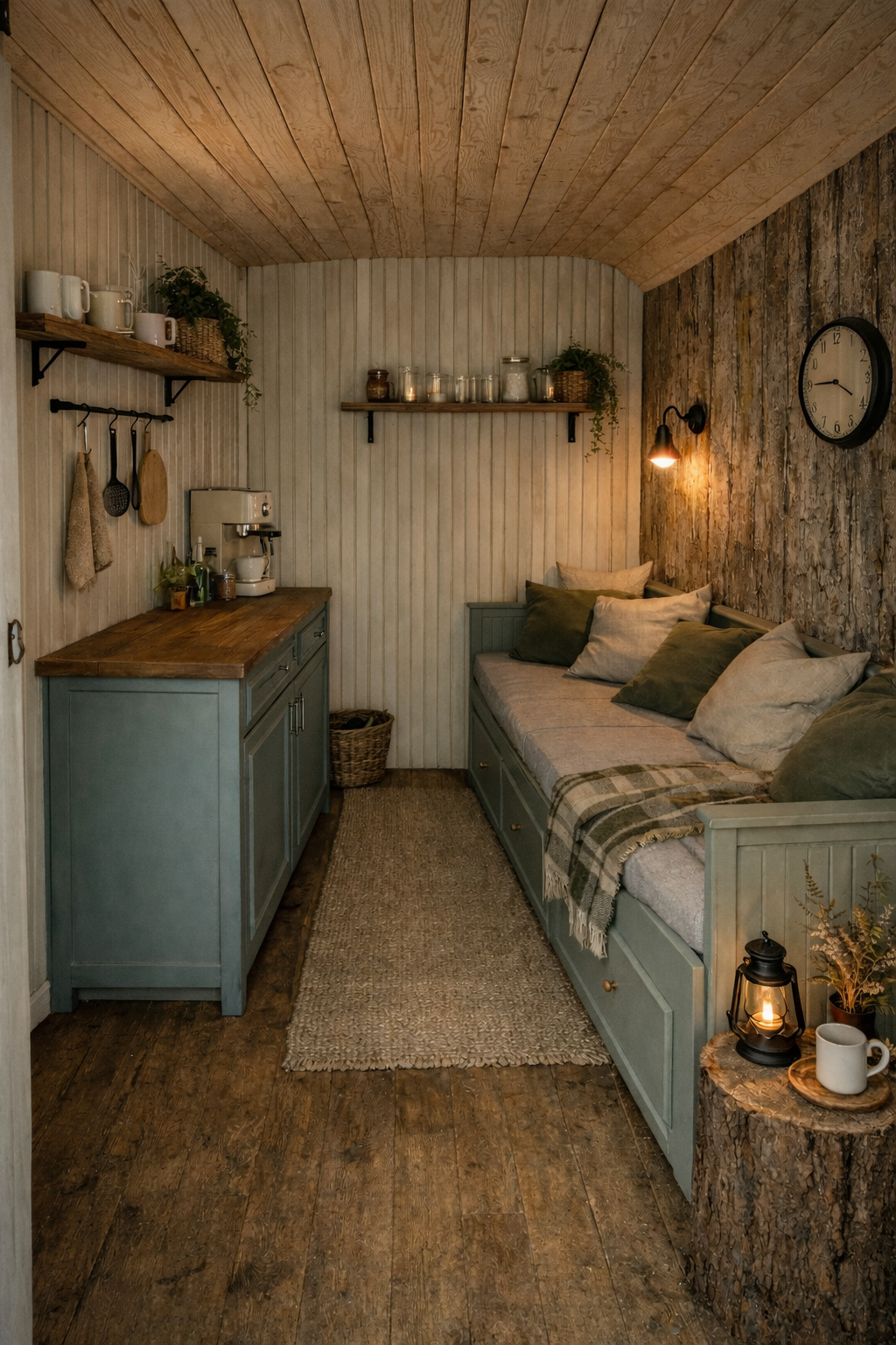 De Boomkamer is een knusse “cabin in the woods” voor twee personen: stoer, compact en helemaal in bosstijl.